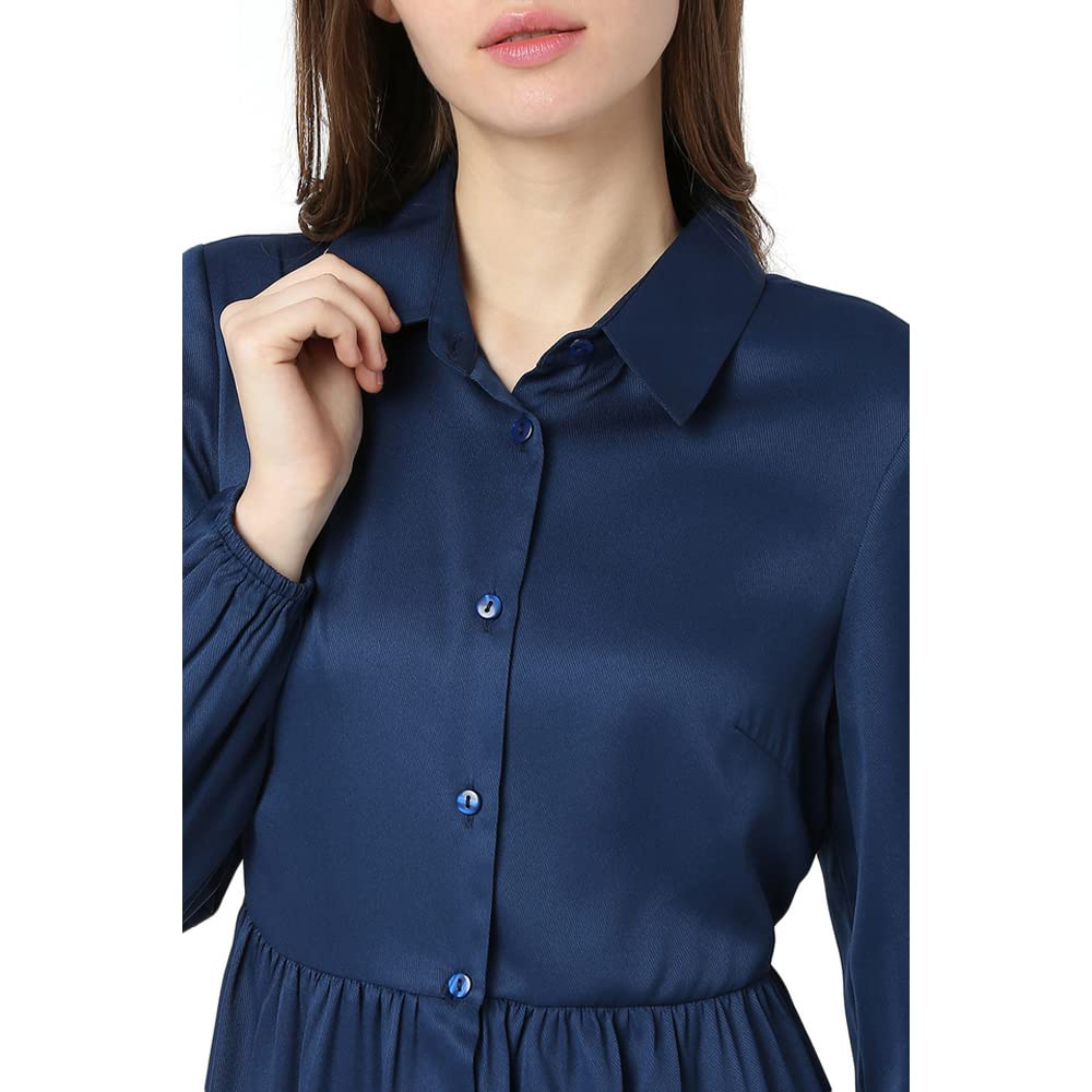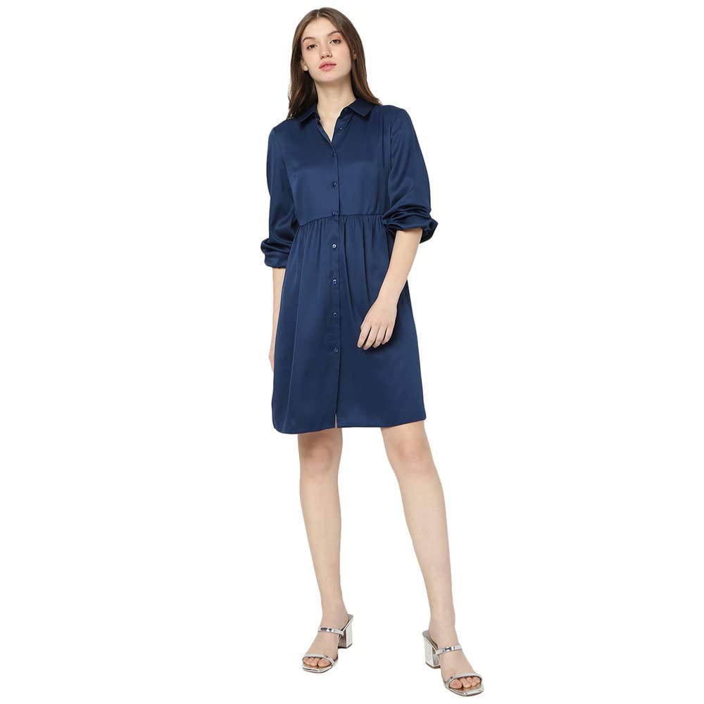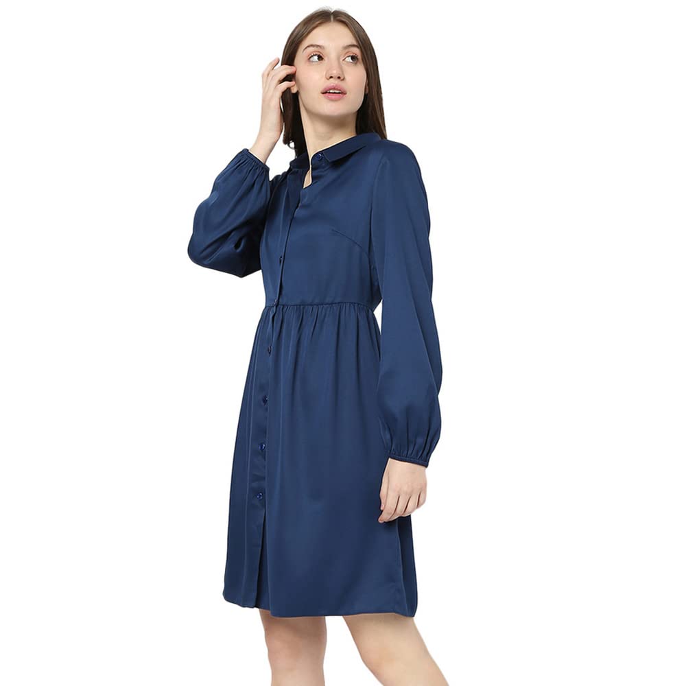 Vero Moda Women 100%Polyester Solid Casual Navy Blue Dress