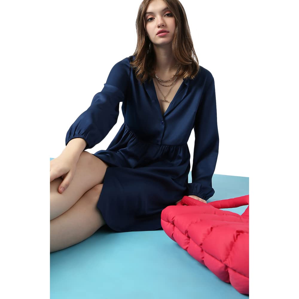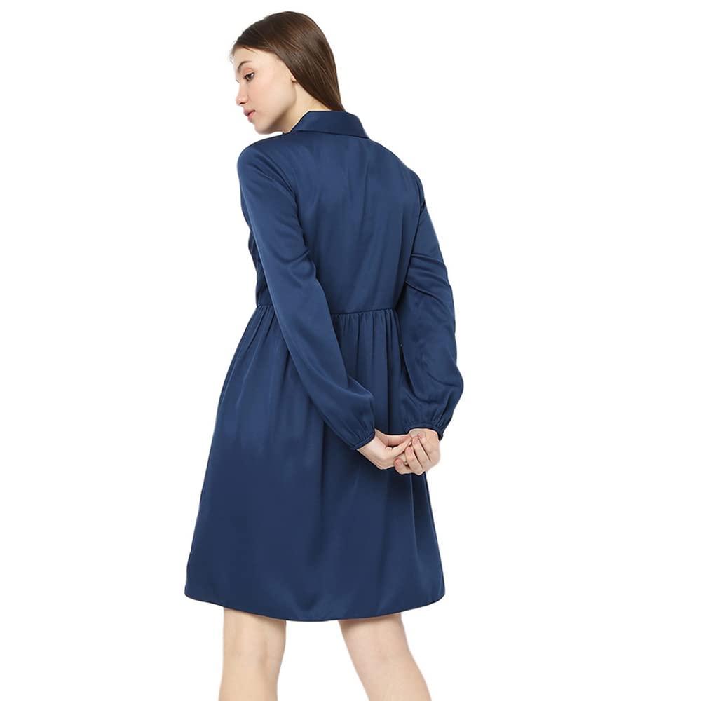 Solid Polyester Collar Neck Women’s Mini Dress