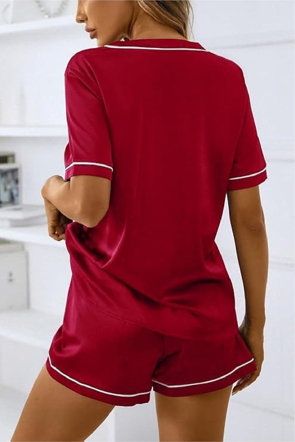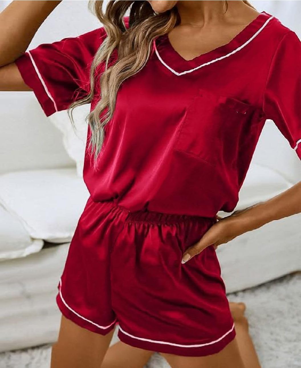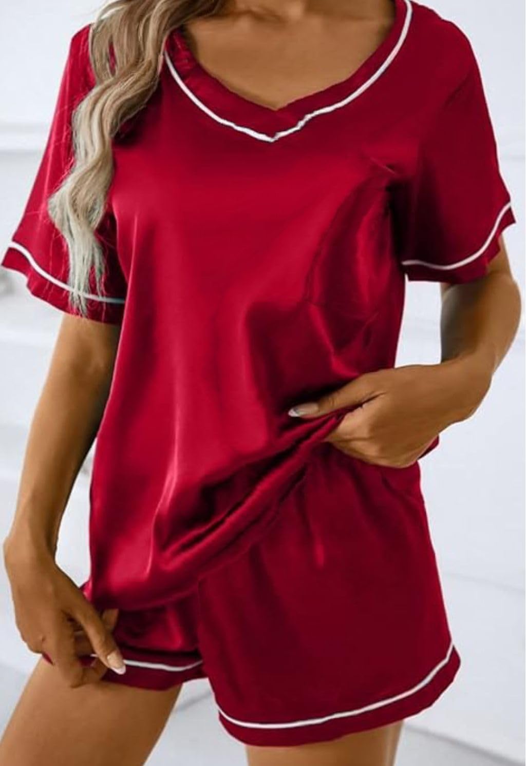 - Packing List 1 Pc Ribbed V-neck Top tshirt and shorts nightsuit nightdress pyjama set. Notes 1. Due to different displays and lighting effects, the actual color of the product may be slightly different from the color shown on the picture. 2. Due to manual measurement, please allow slight measurement deviation.