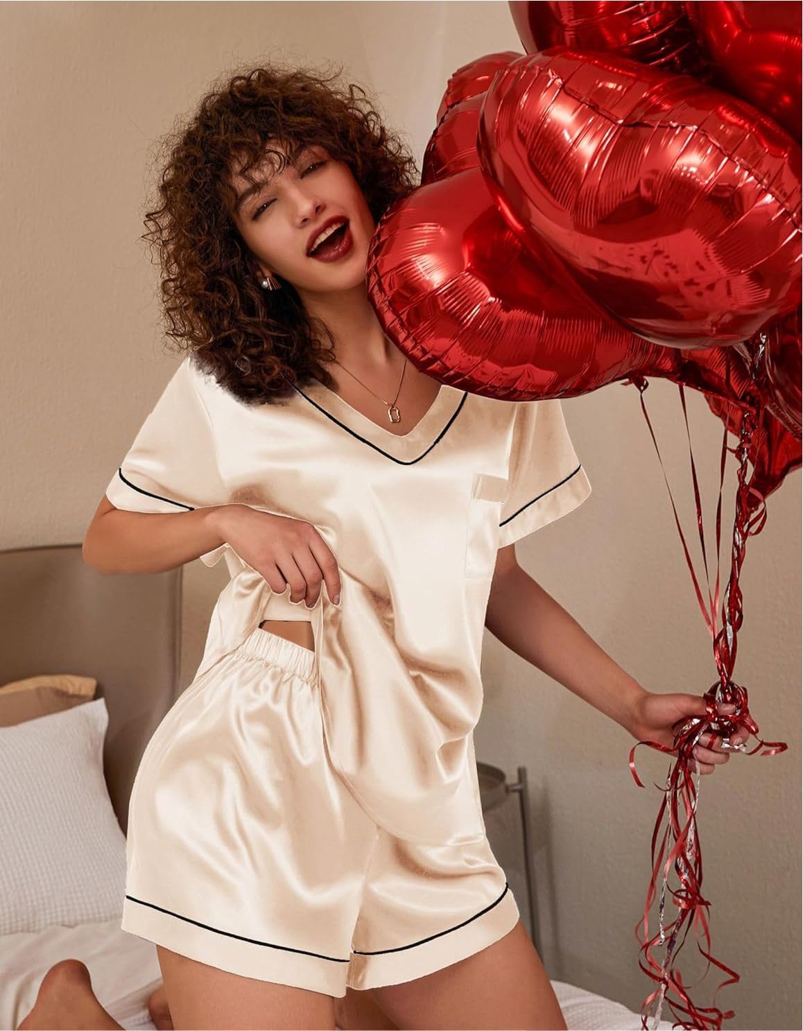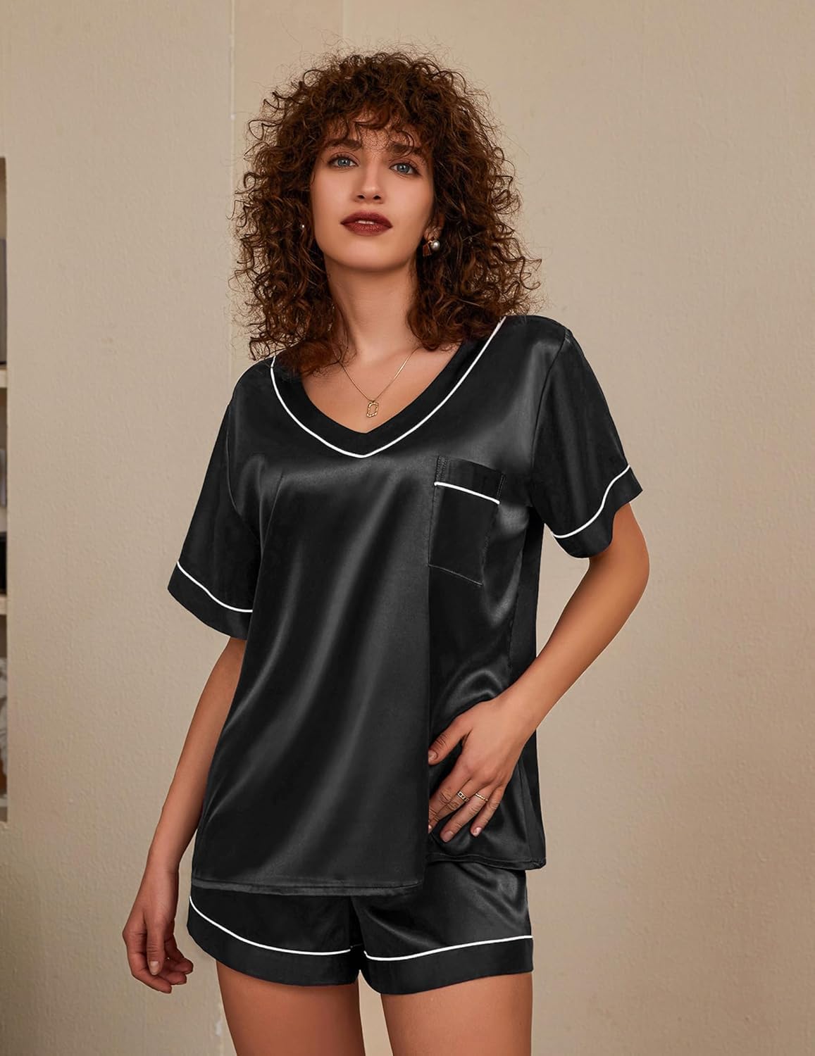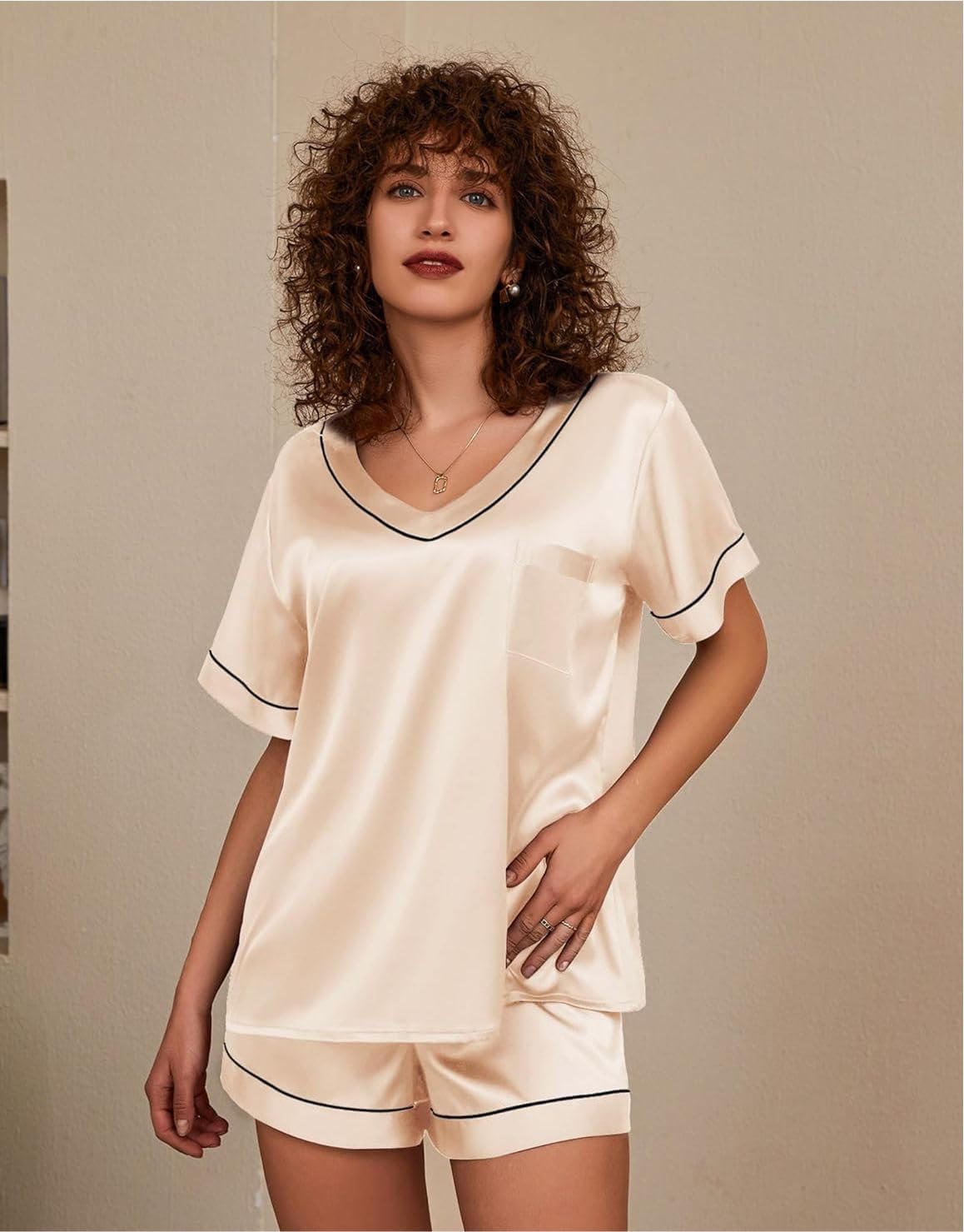 - Packing List 1 Pc Ribbed V-neck Top tshirt and shorts nightsuit nightdress pyjama set. Notes 1. Due to different displays and lighting effects, the actual color of the product may be slightly different from the color shown on the picture. 2. Due to manual measurement, please allow slight measurement deviation.