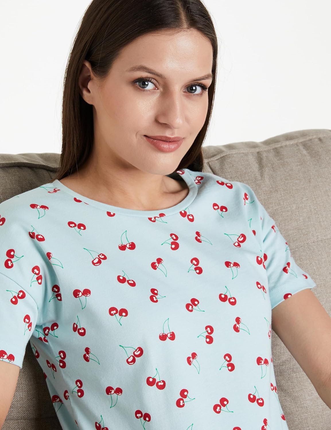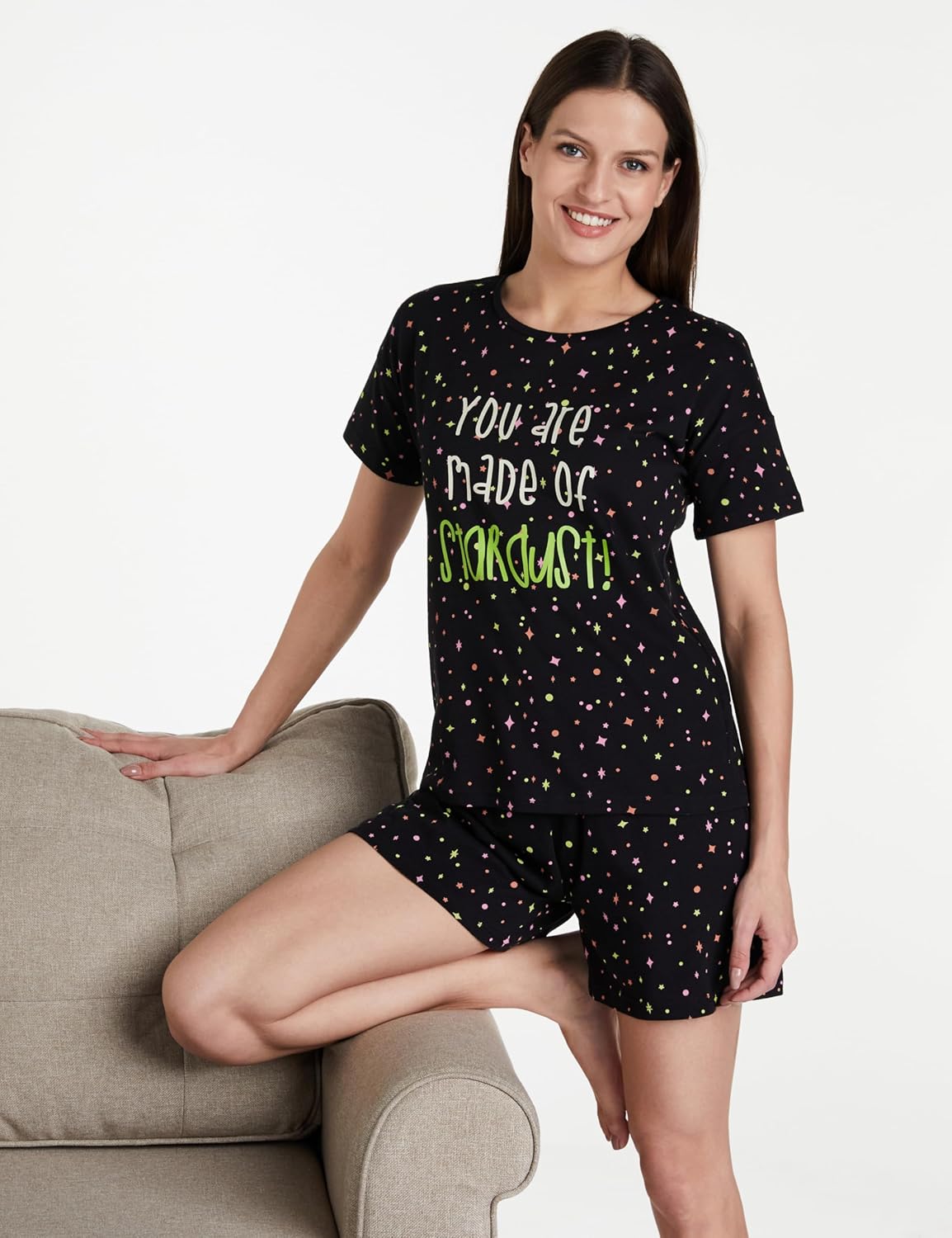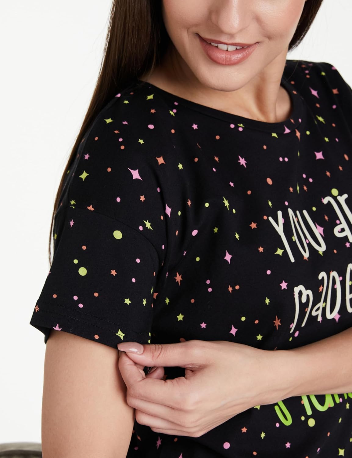 Women Cotton Regular Fit T-Shirt and Shorts Night Suit (Night Wear | Co-ord Set | Lounge Wear Set)