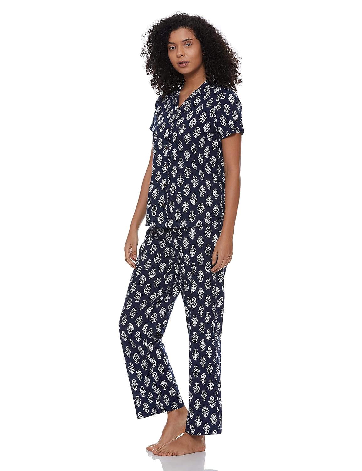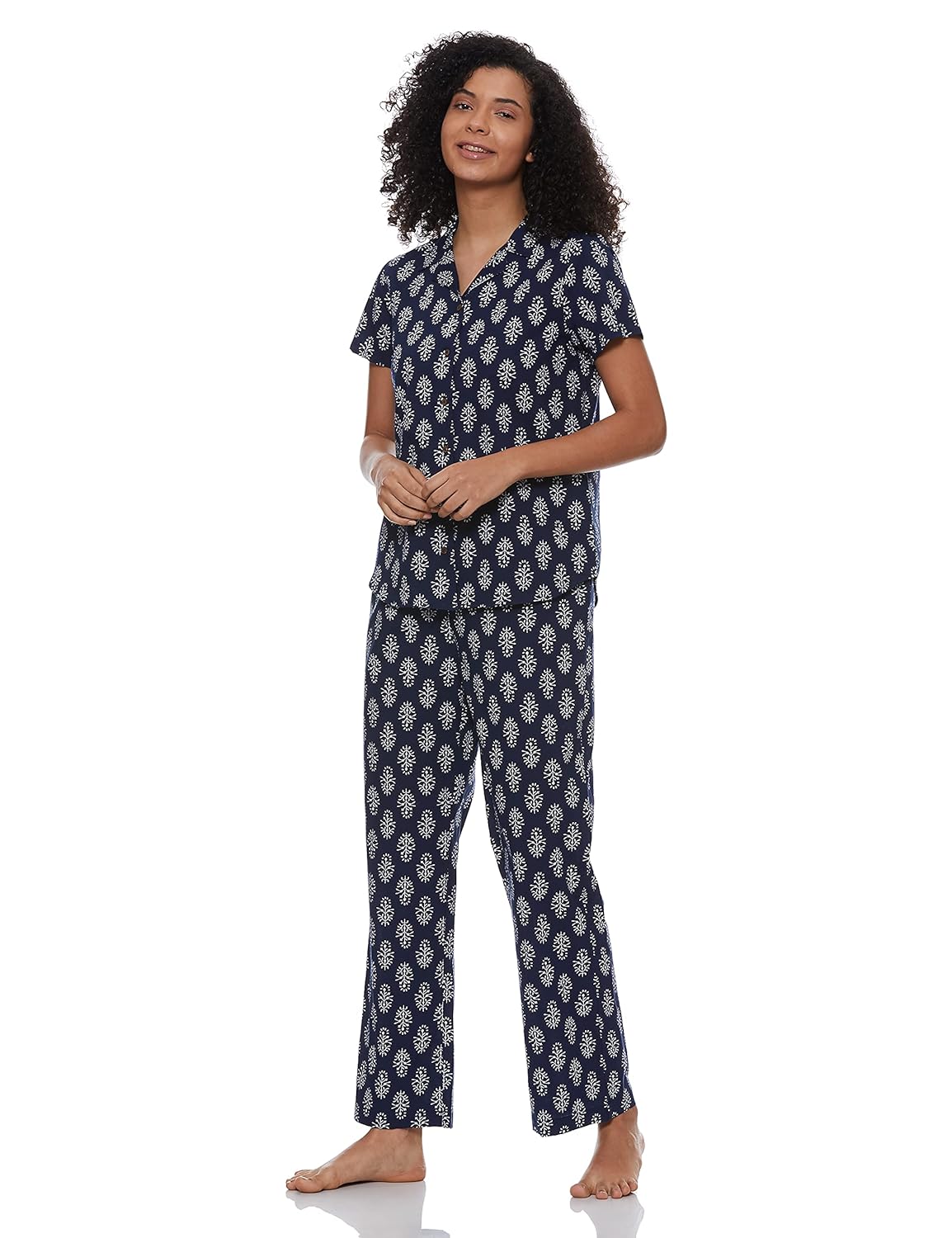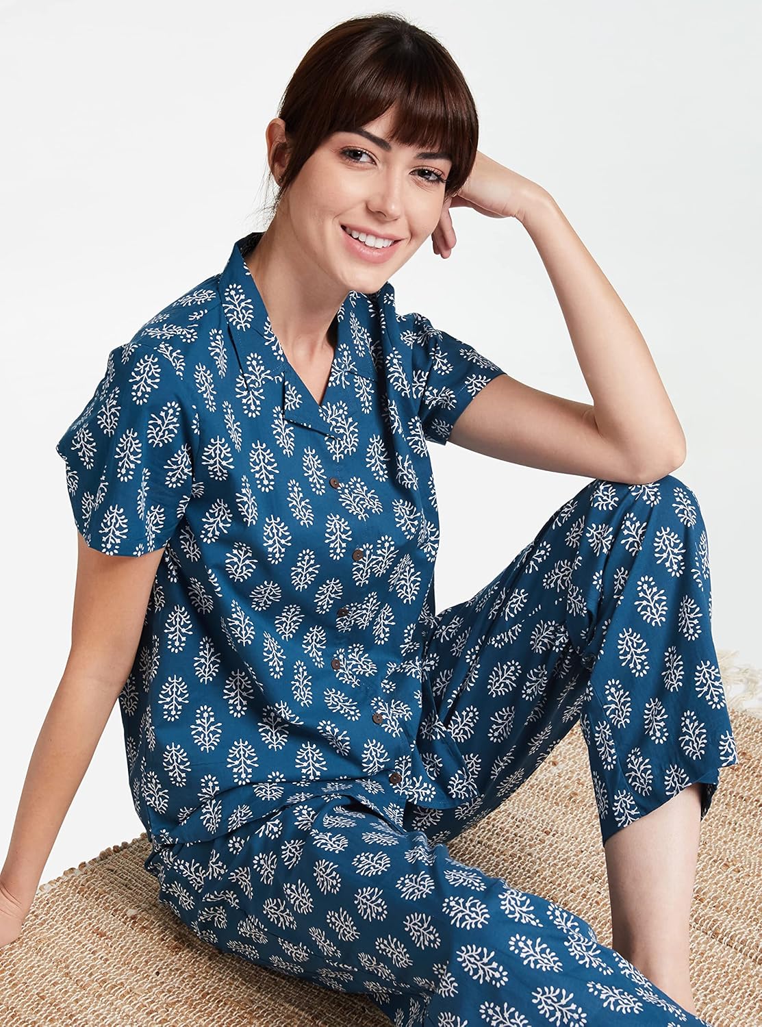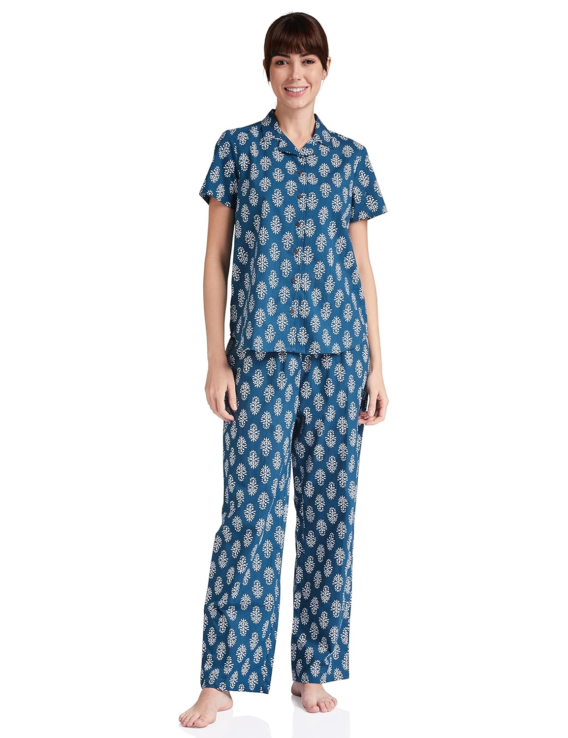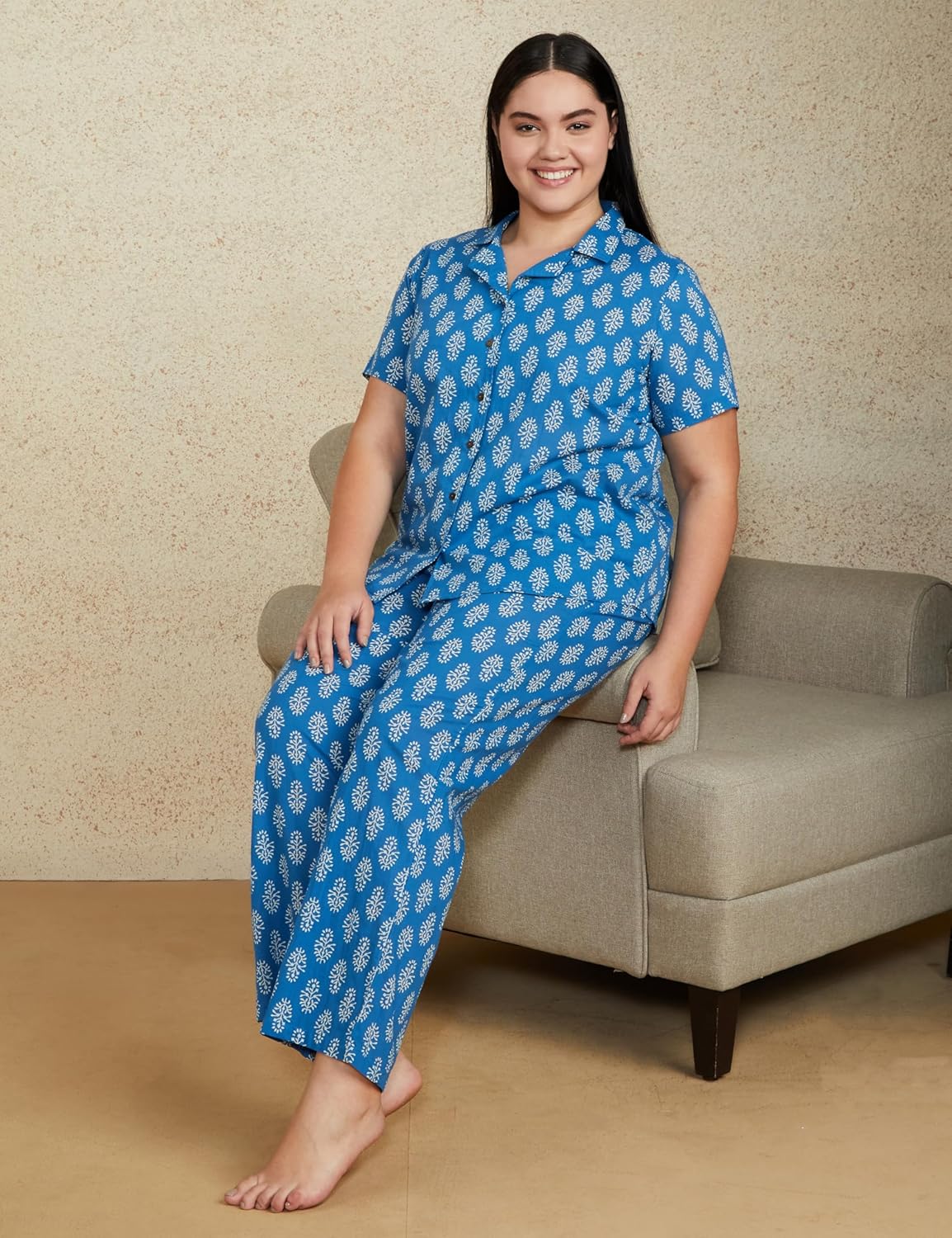 A comfortable Pajama Set to add to your lounge wear collection from Myx. These all over print pajama sets give you a cool and stylish look, this style is rendered from soft and lightweight cotton fabric and comes with a stylish appeal. Made of the best quality cotton fabric, these night suit pajama sets have been extensively crafted to ensure that wearer enjoys a good night’s sleep.