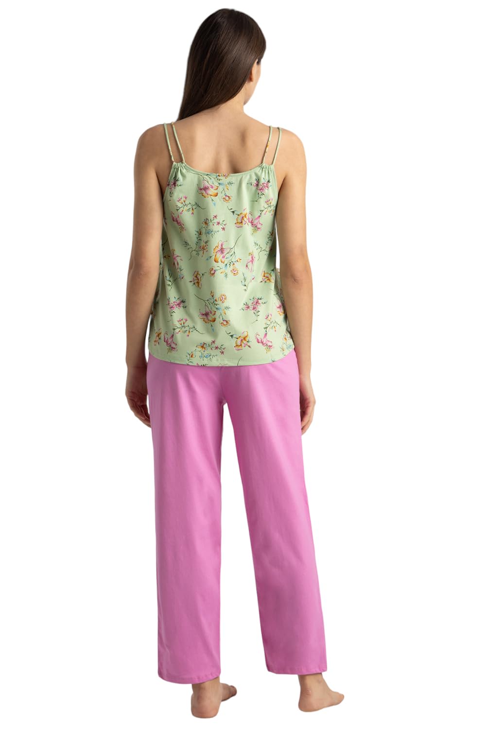 Women Lounge Round Neck Lounge Cami Top and Pants Set – 100% Cotton – Shoulder Straps, Elasticized Waistband