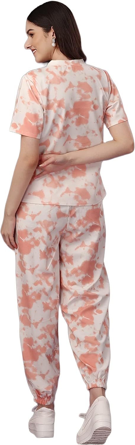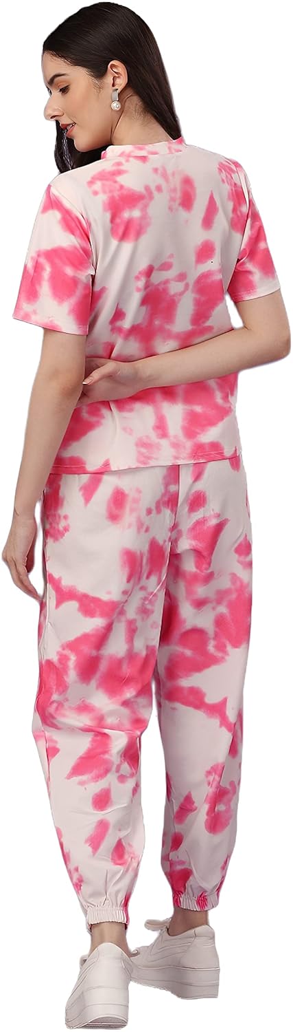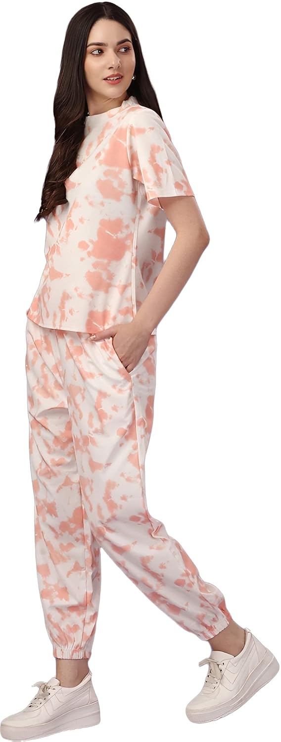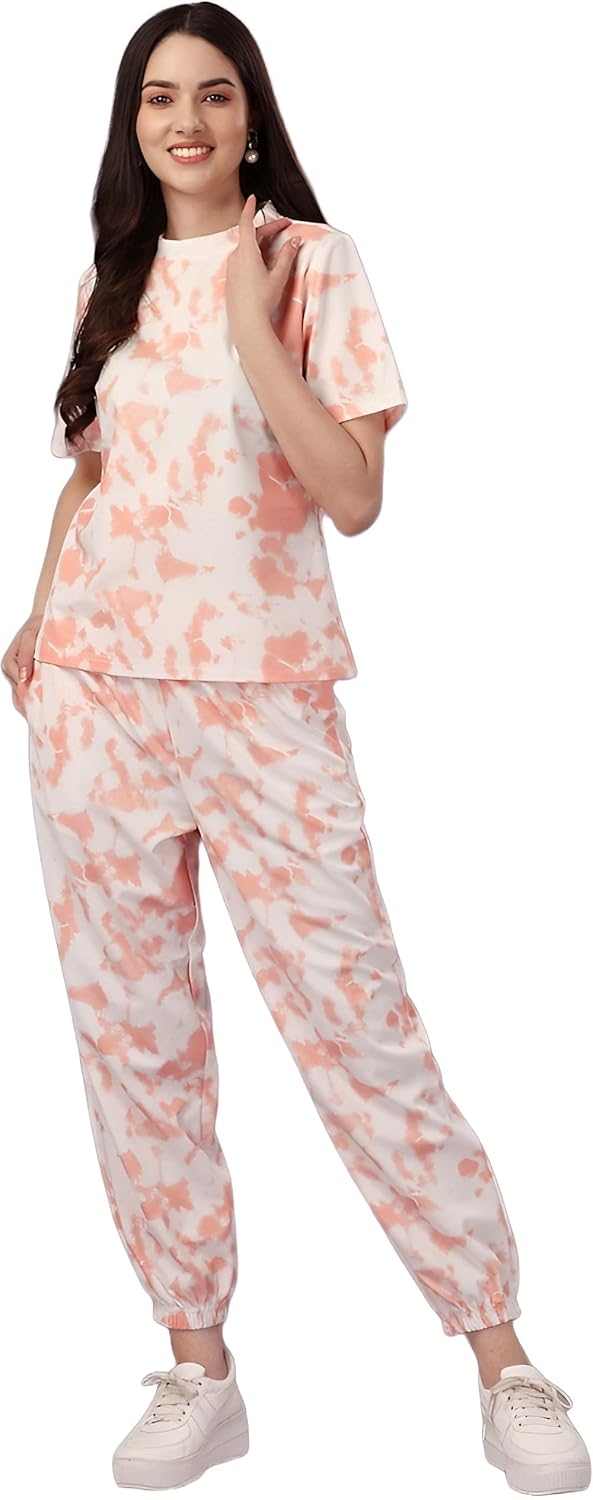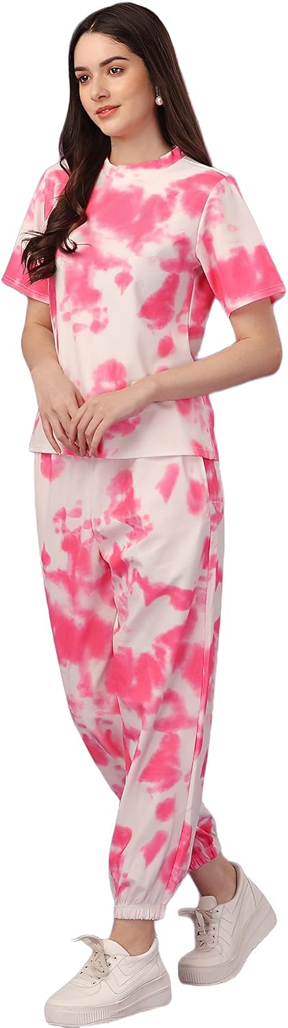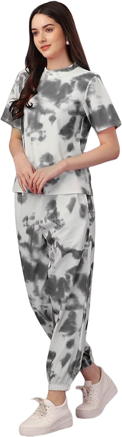 Women’s Night Suit Set for Women, Lounge Wear, Printed Top and Pyjama Set for Women Nightwear/Loungewear/Night Dress for Women Knitted Tie & Dye Printed Crop T-Shirt -Pyjama