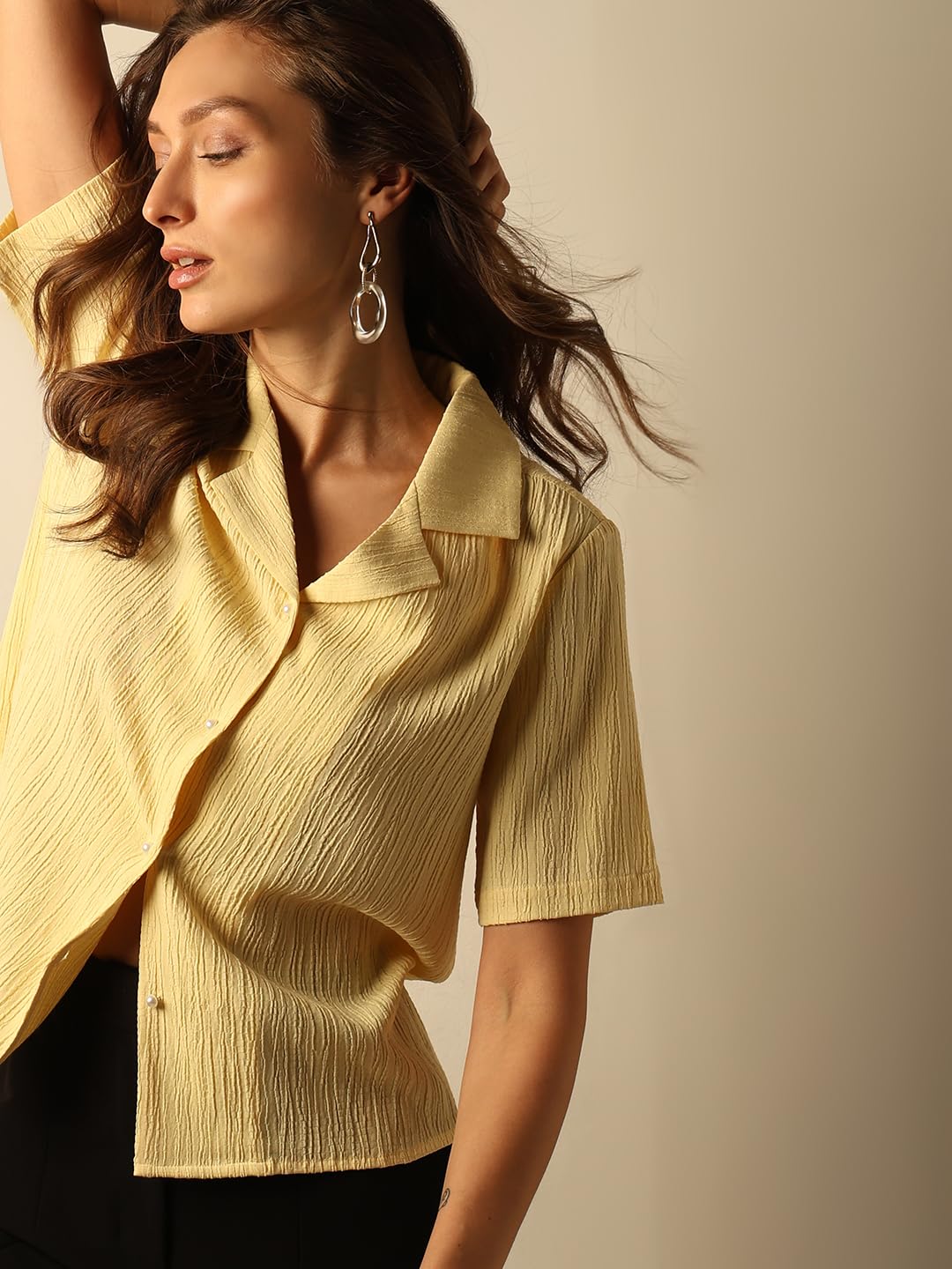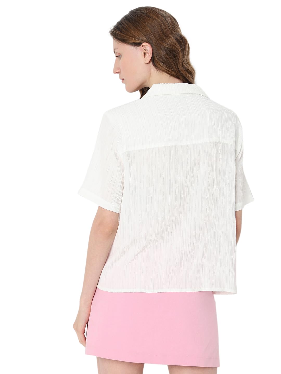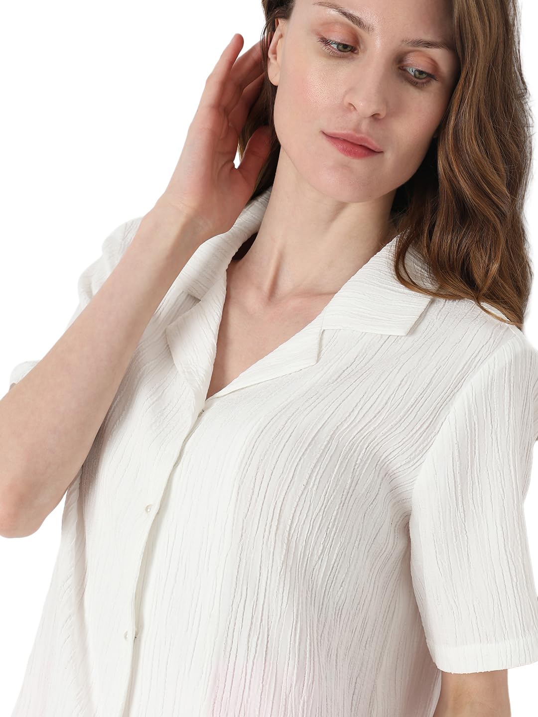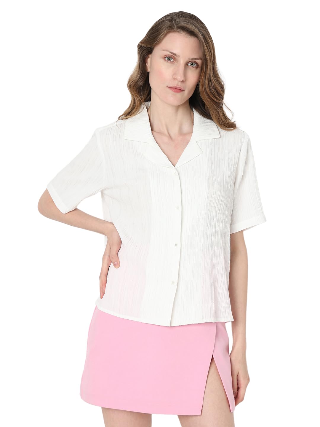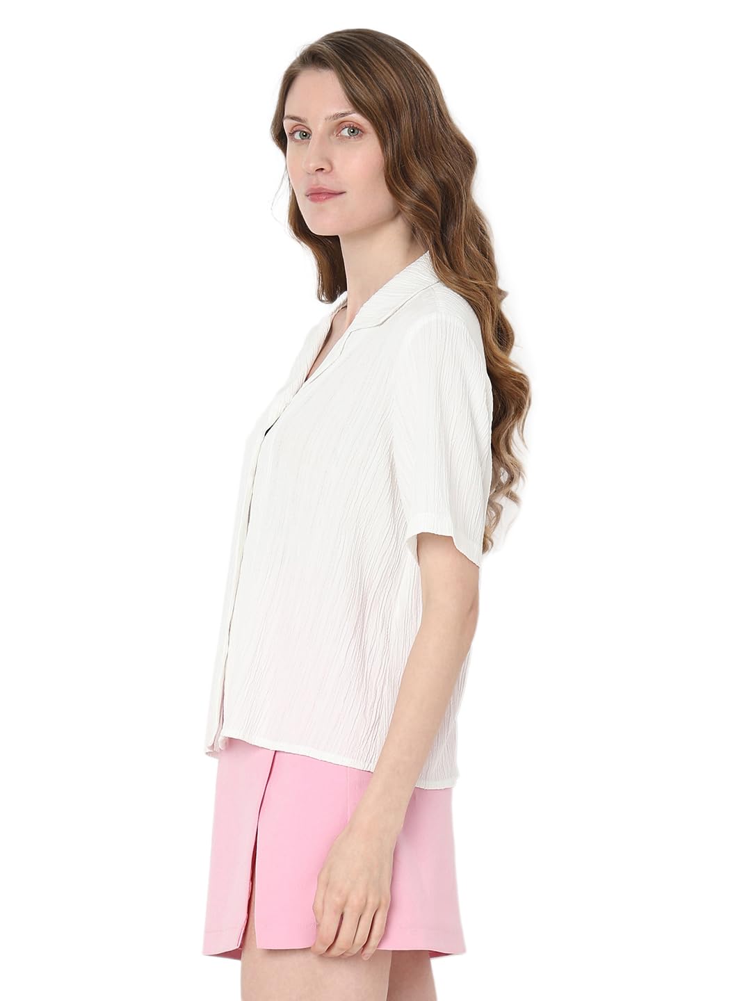 Introducing our White Crinkled Short Sleeve Shirt – a timeless addition to your wardrobe. This classic front button-up shirt, crafted in a regular fit, effortlessly falls at the hip for a polished look. The subtle texture adds a touch of sophistication, making it perfect for any occasion. Elevate your style with this versatile piece that seamlessly combines comfort and class.