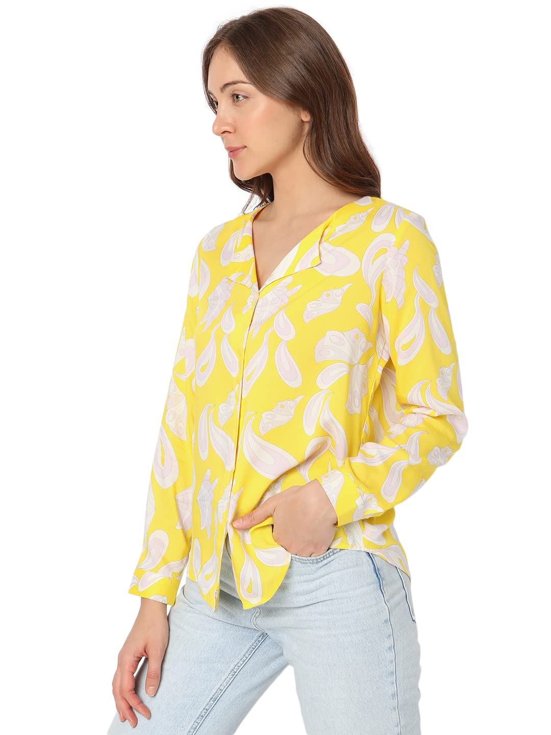 Vero Moda Women 100%Viscose Printed Casual Yellow Shirt